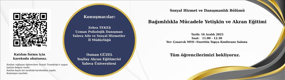 Yer: Çınarcık MYO – Nurettin Topçu Konferans Salonu