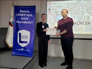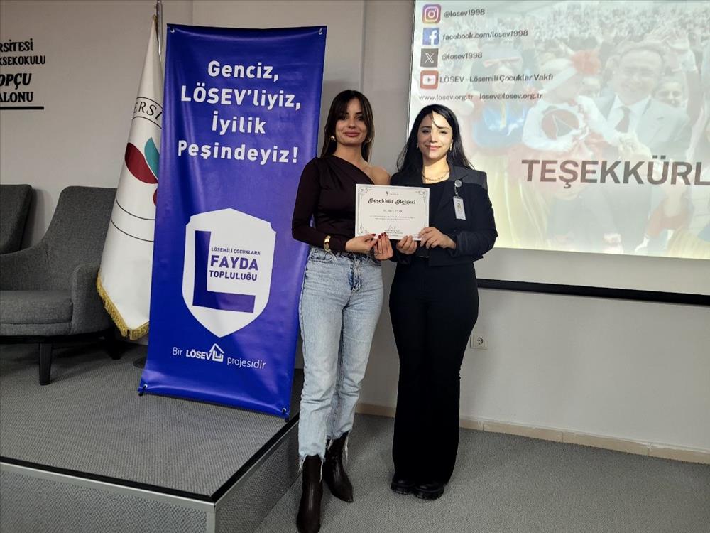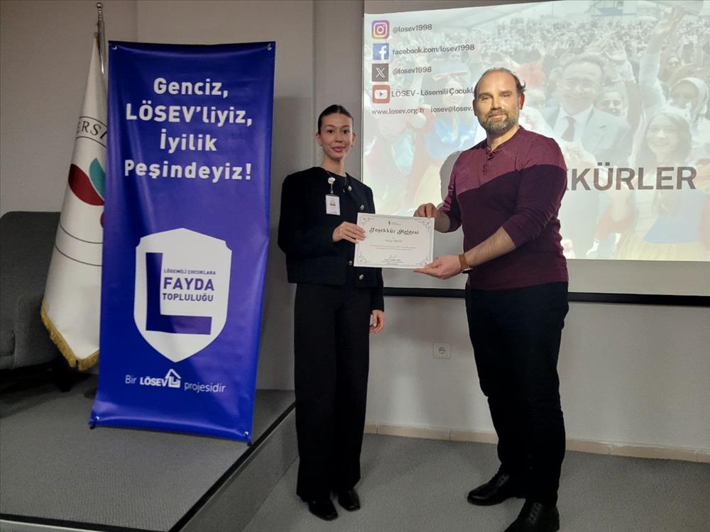LÖSEV ve Lösemili Çocuklara FAYDA Topluluğu iş birliğiyle üniversitemizde düzenlenen kanser farkındalığı ve gönüllülük temalı seminerin ardından, etkinliğe katkı sunan katılımcılara katılım teşekkür belgeleri takdim edildi.